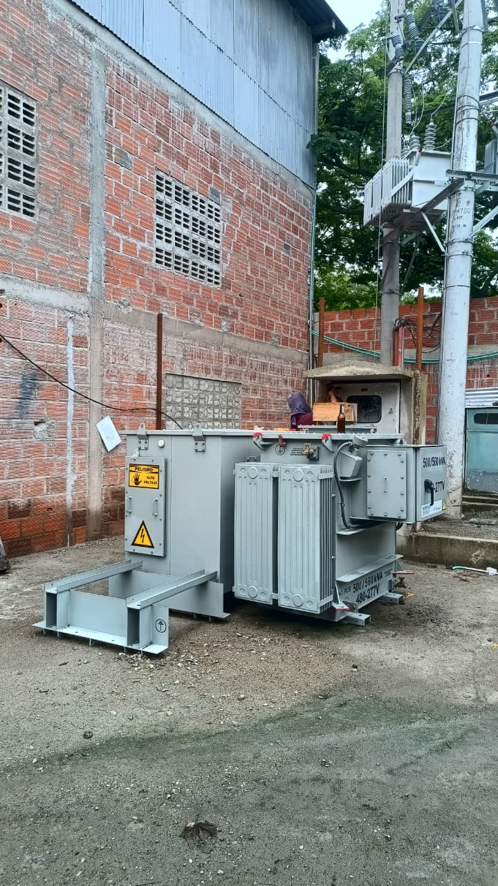Repotenciación del sistema eléctrico de 225 a 500 KVA. Incluye línea de 34.5 KV, equipo de medida a nivel de 34500 Voltios, montaje de subestación tipo patio y tableros de distribución, banco automáticos de condensadores y centro de control de motores en la planta de proceso industrial de la empresa CINAGRO SAS.